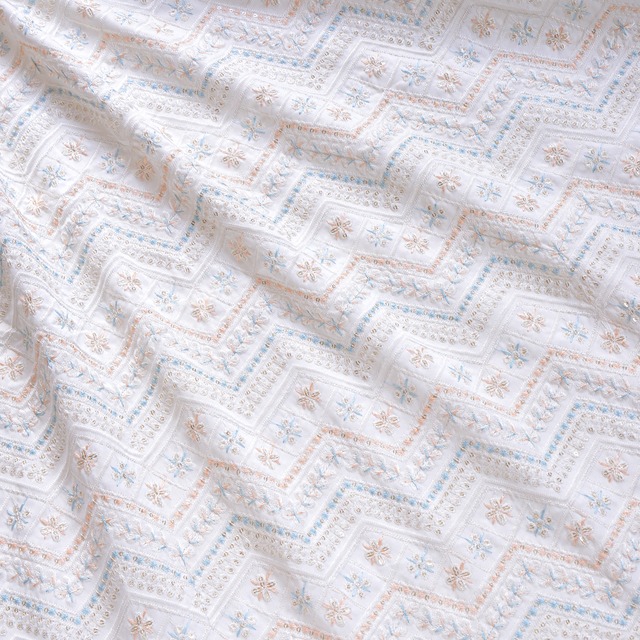 インド刺繍 シフォン生地 ホワイト 25061