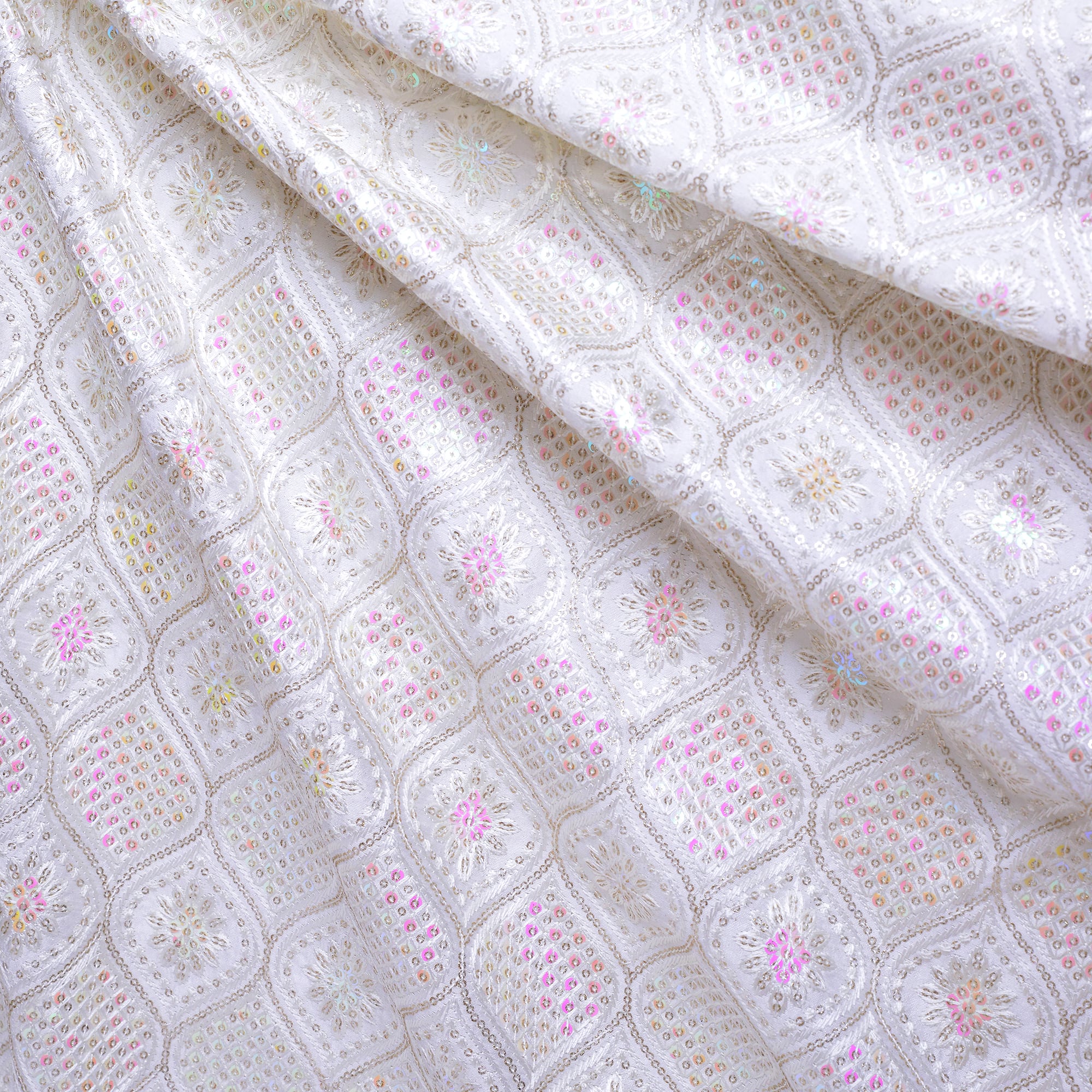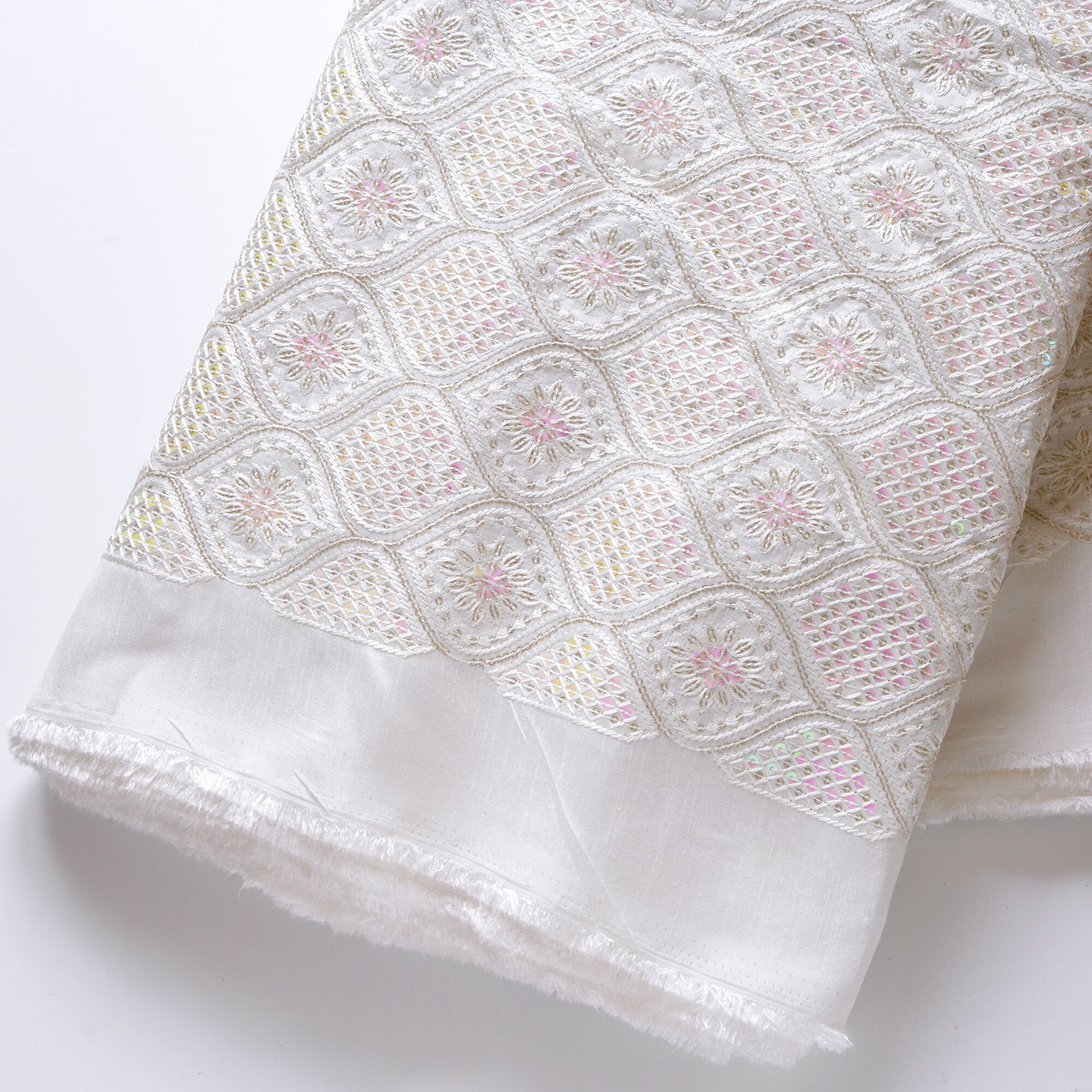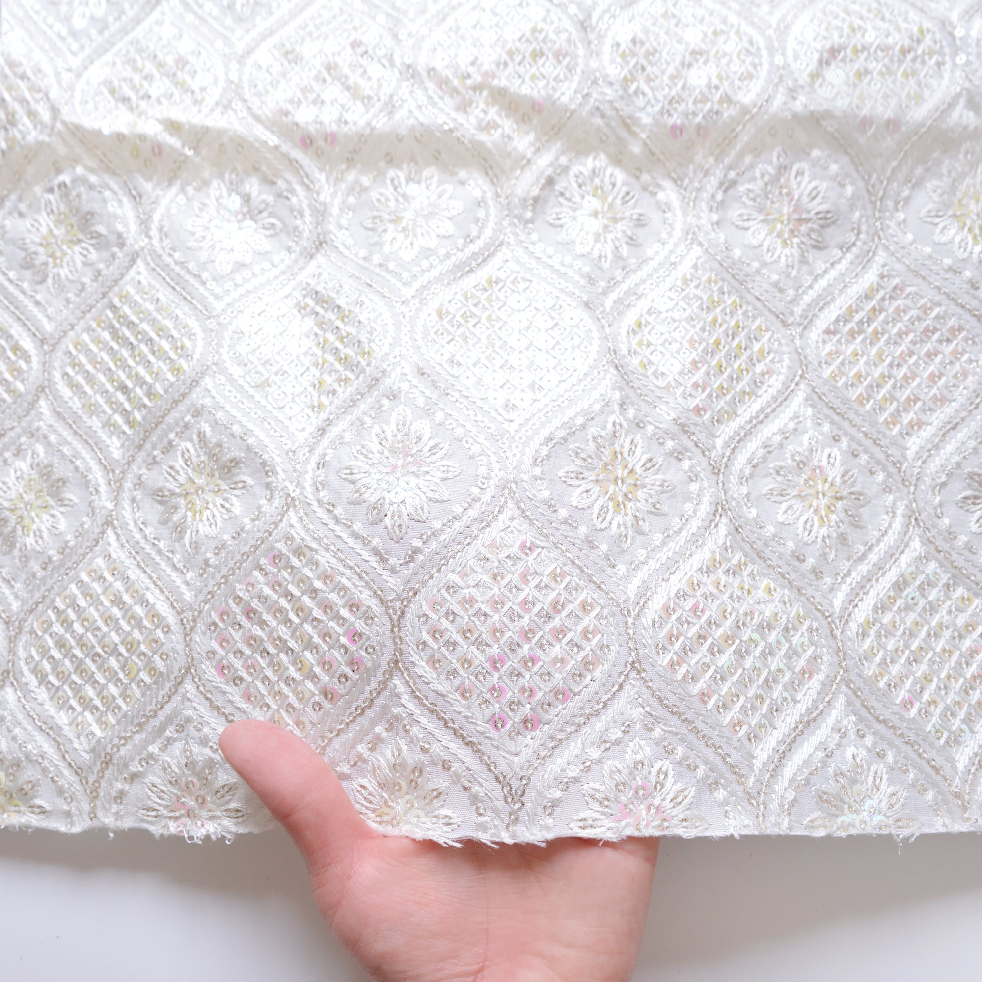 インド刺繍生地 オーロラスパンコール×ホワイト 25041