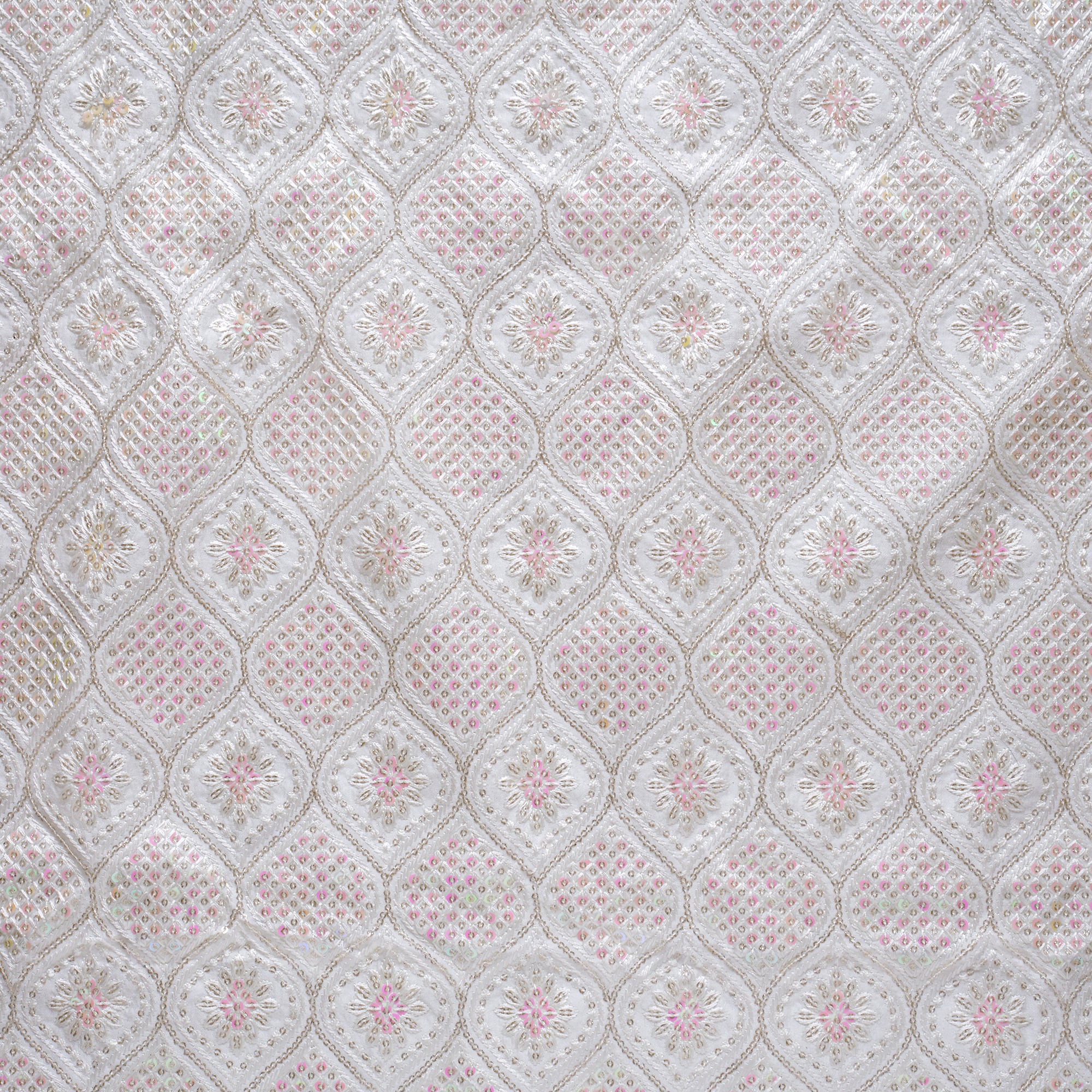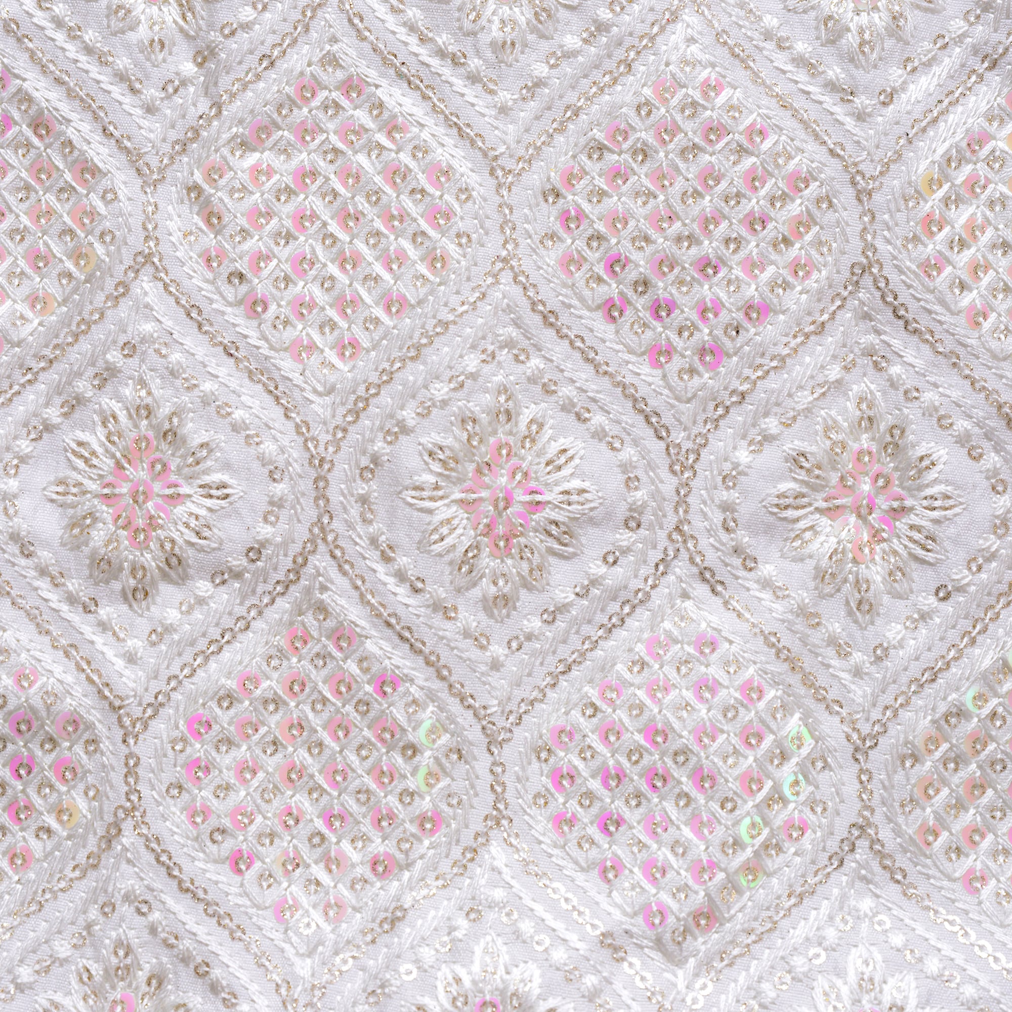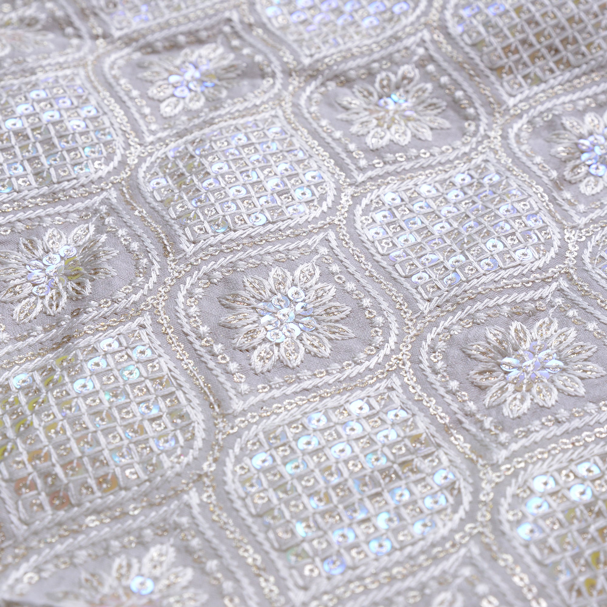 インド刺繍生地 オーロラスパンコール×ホワイト 25041