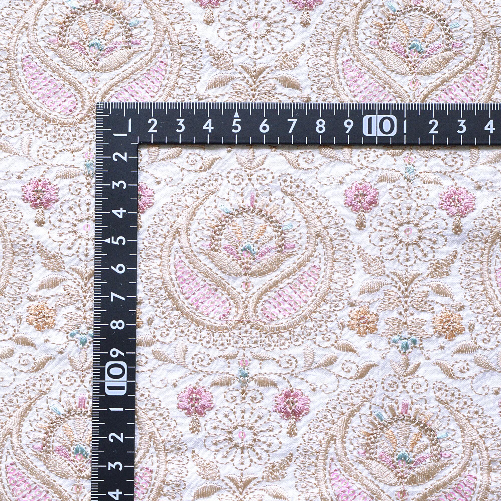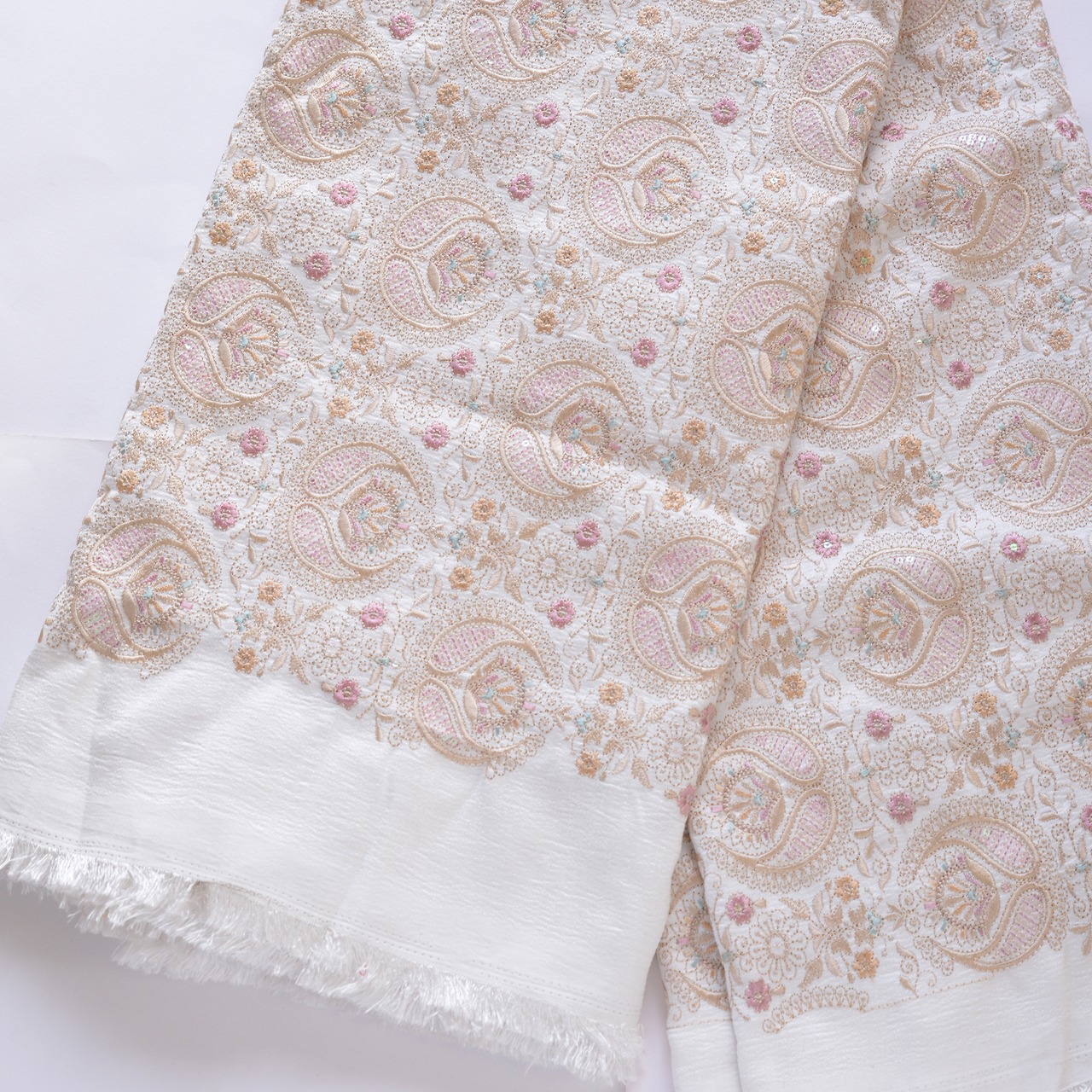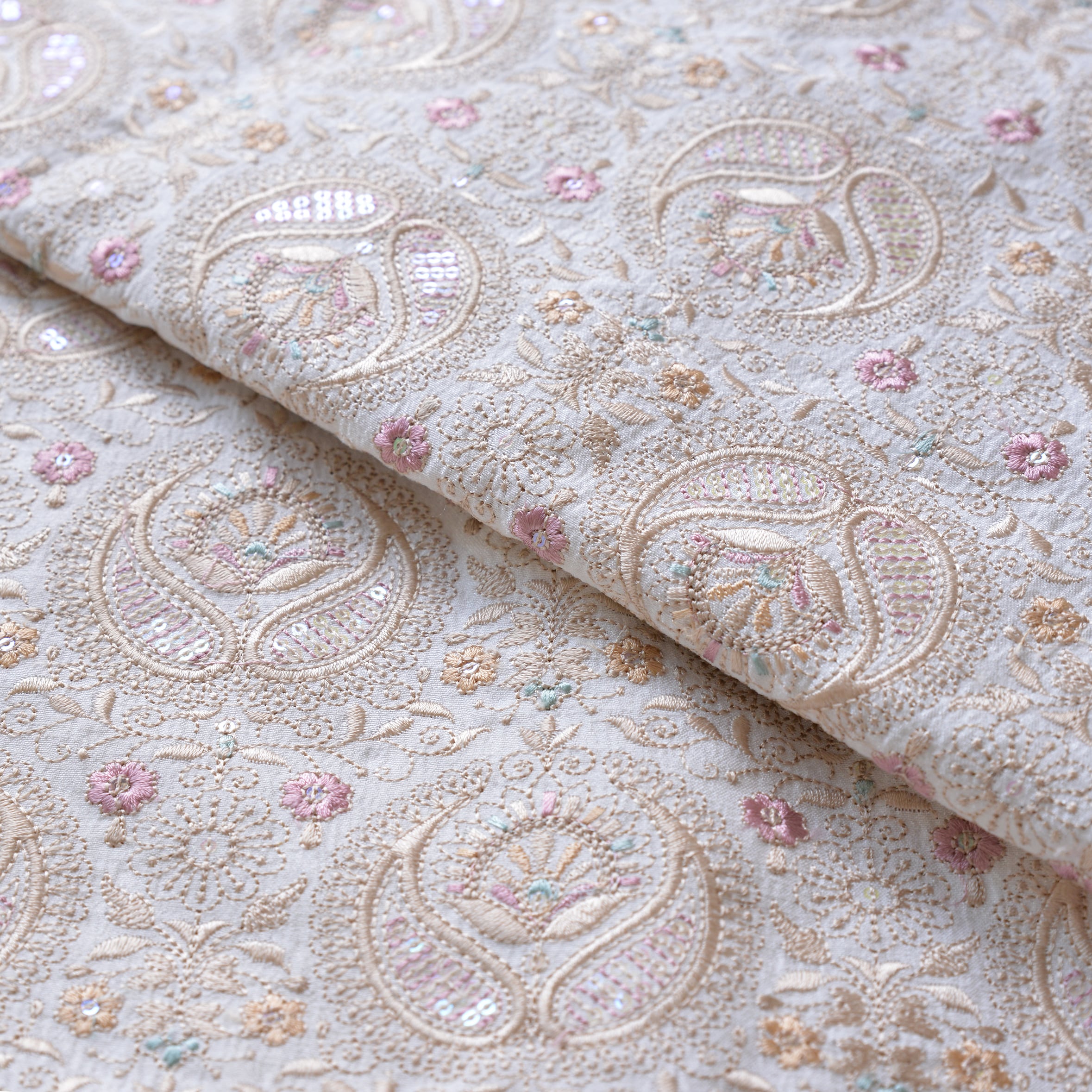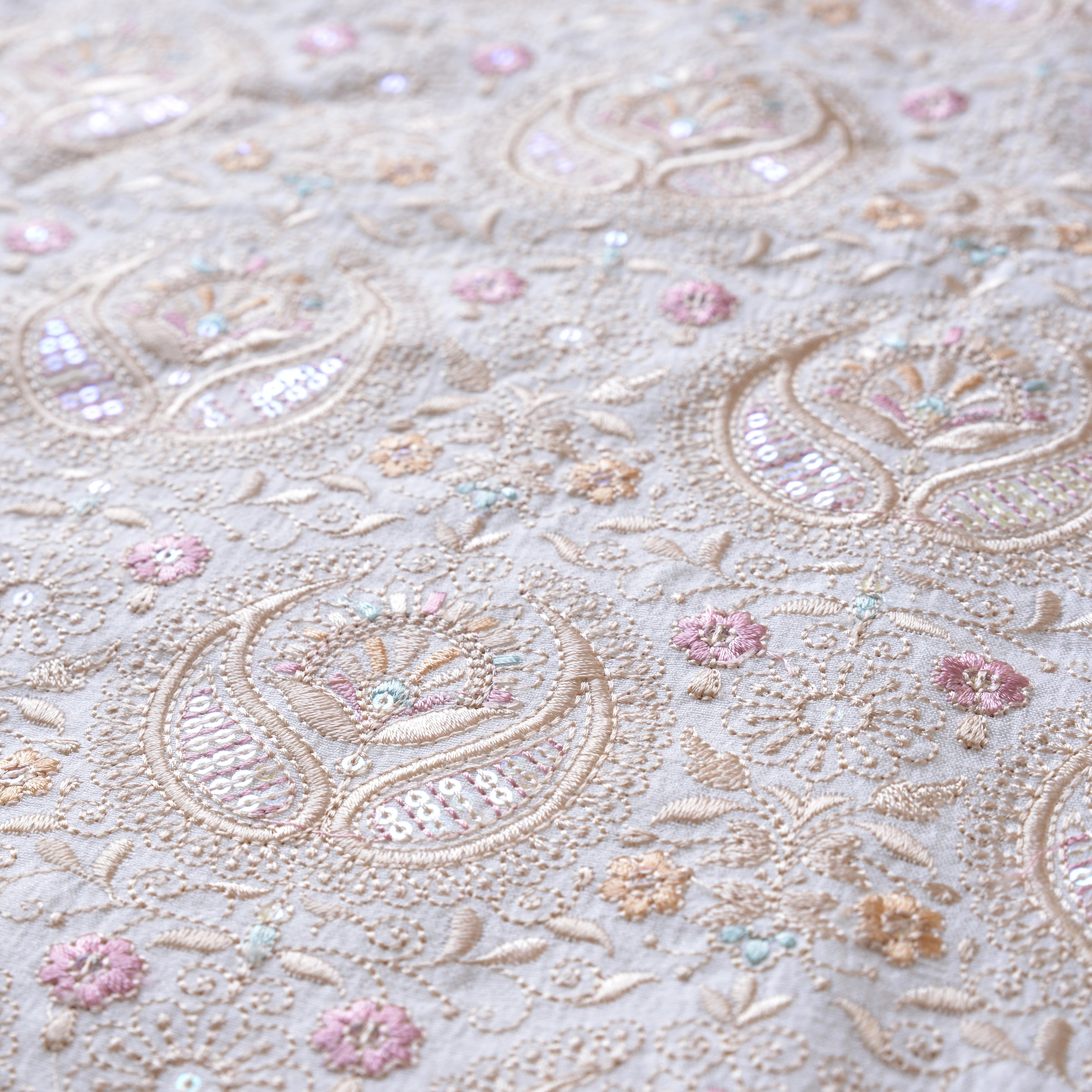 ホワイト生地にオーロラのスパンコールが美しい刺繍生地となっております