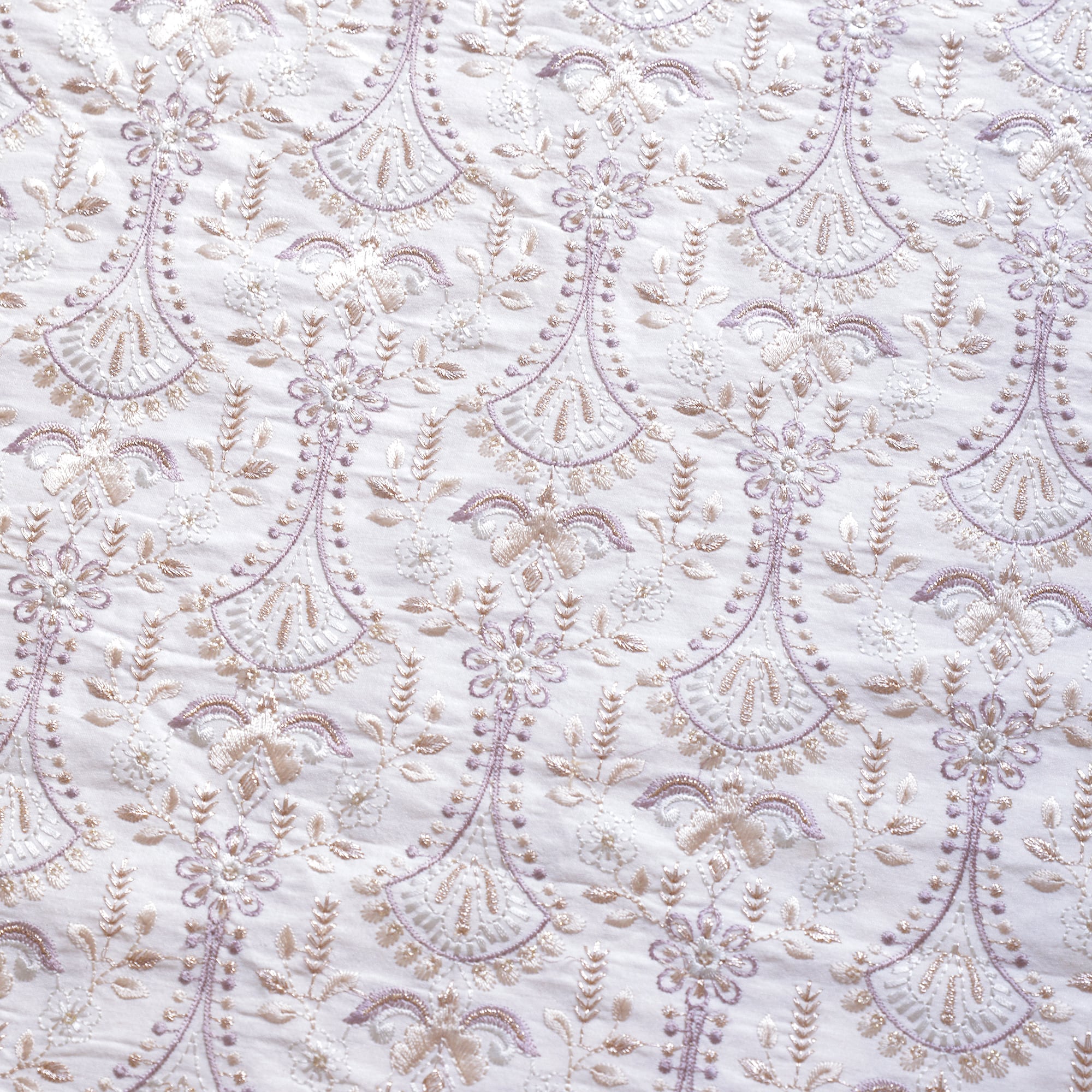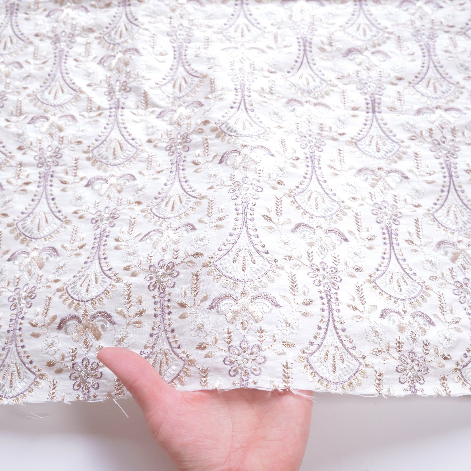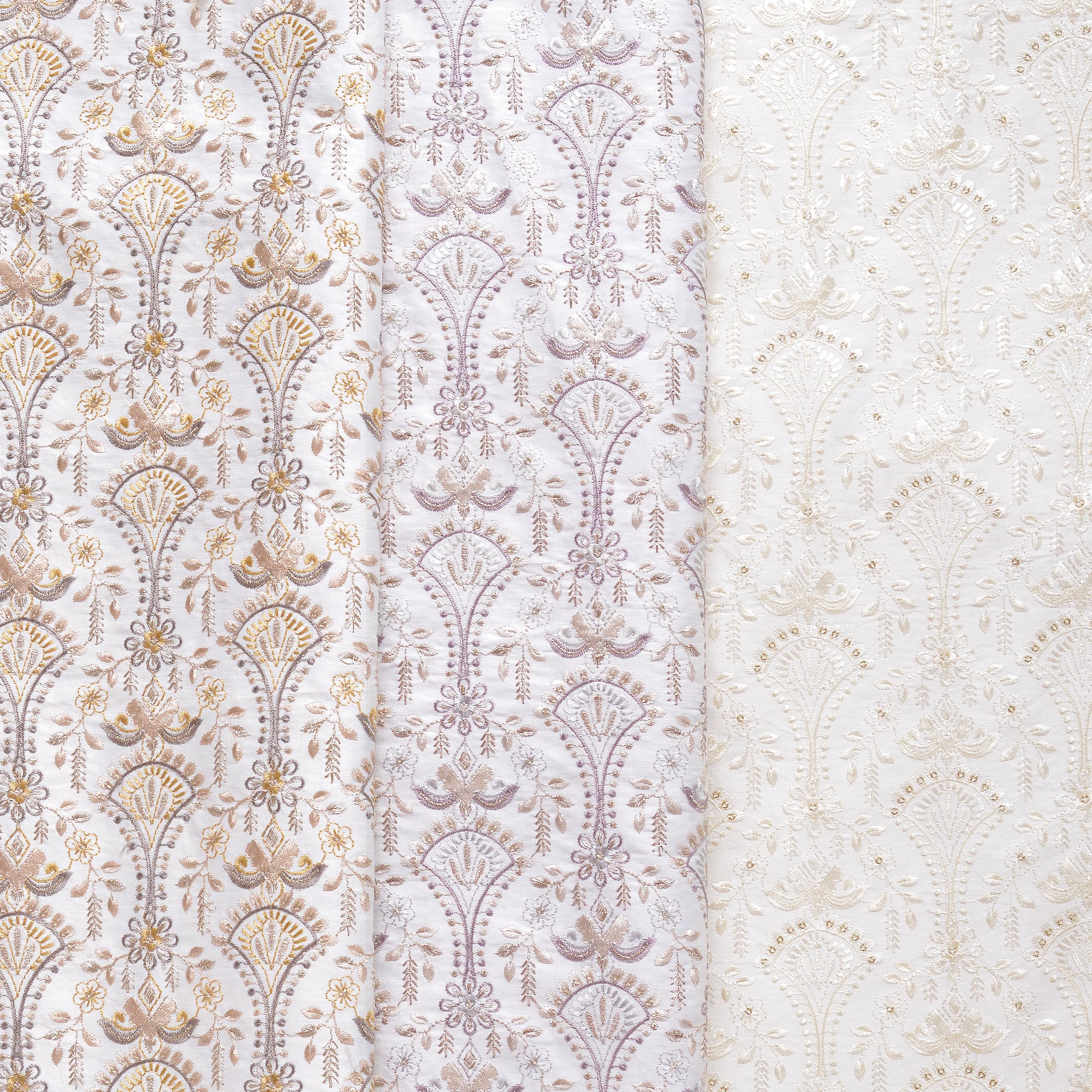 英国壁紙のような高級感のある光沢刺繍が美しいインド刺繍生地となります