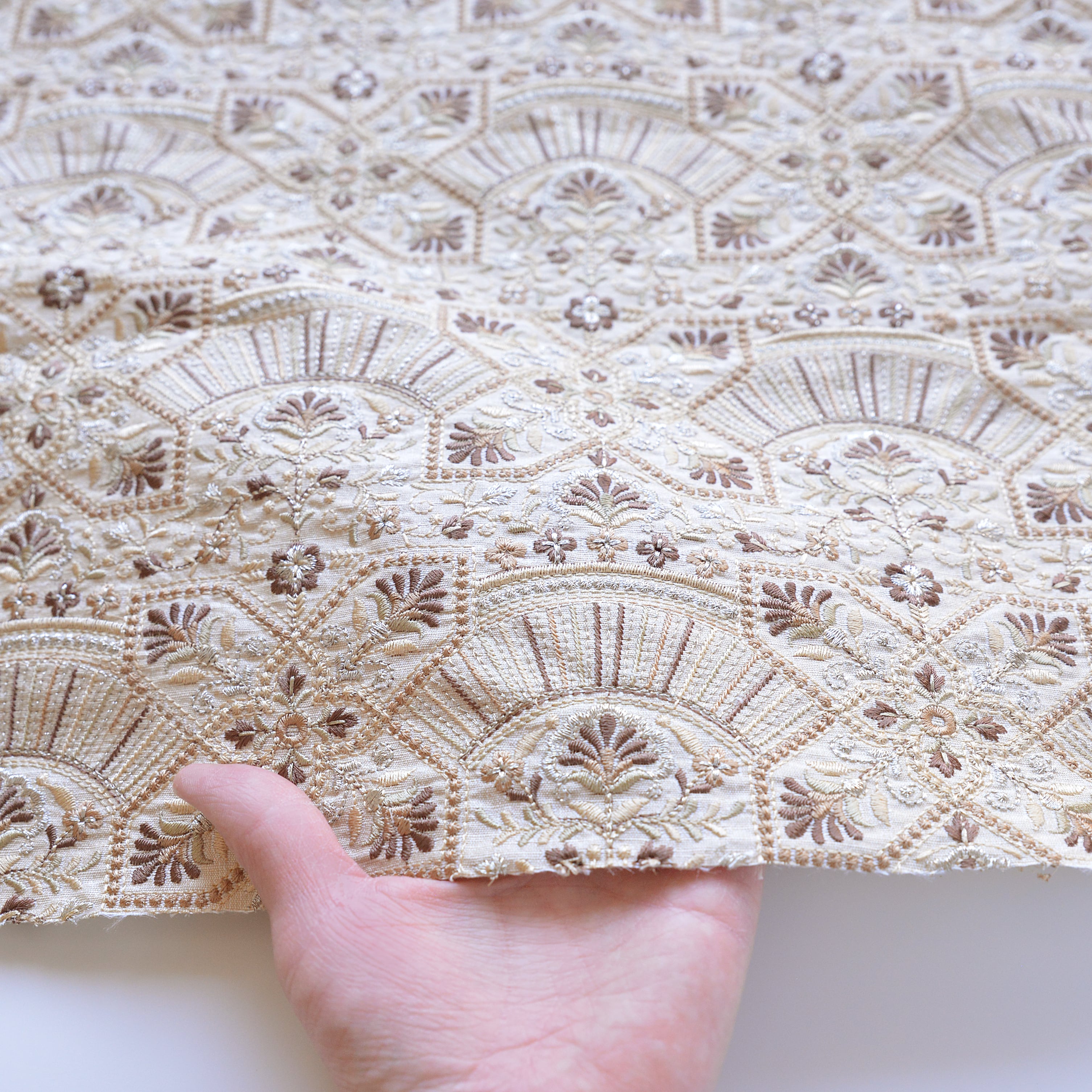 【再販】インド刺繍生地 オリエンタル ブラウン 高級生地 23K53