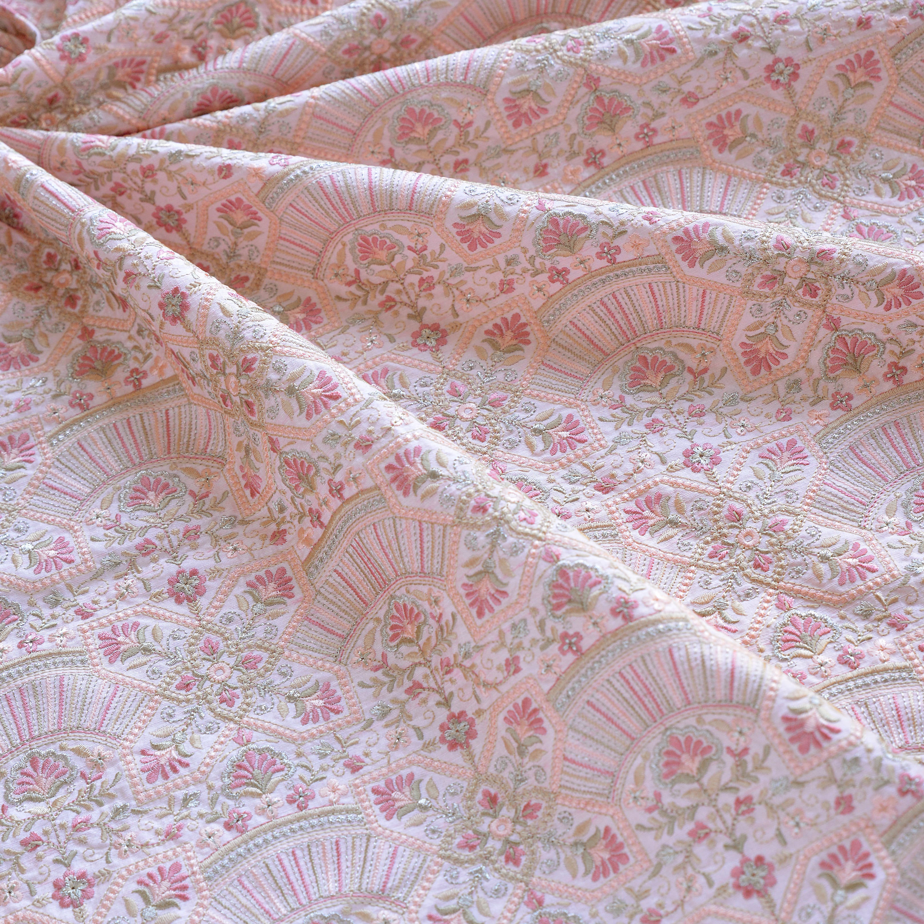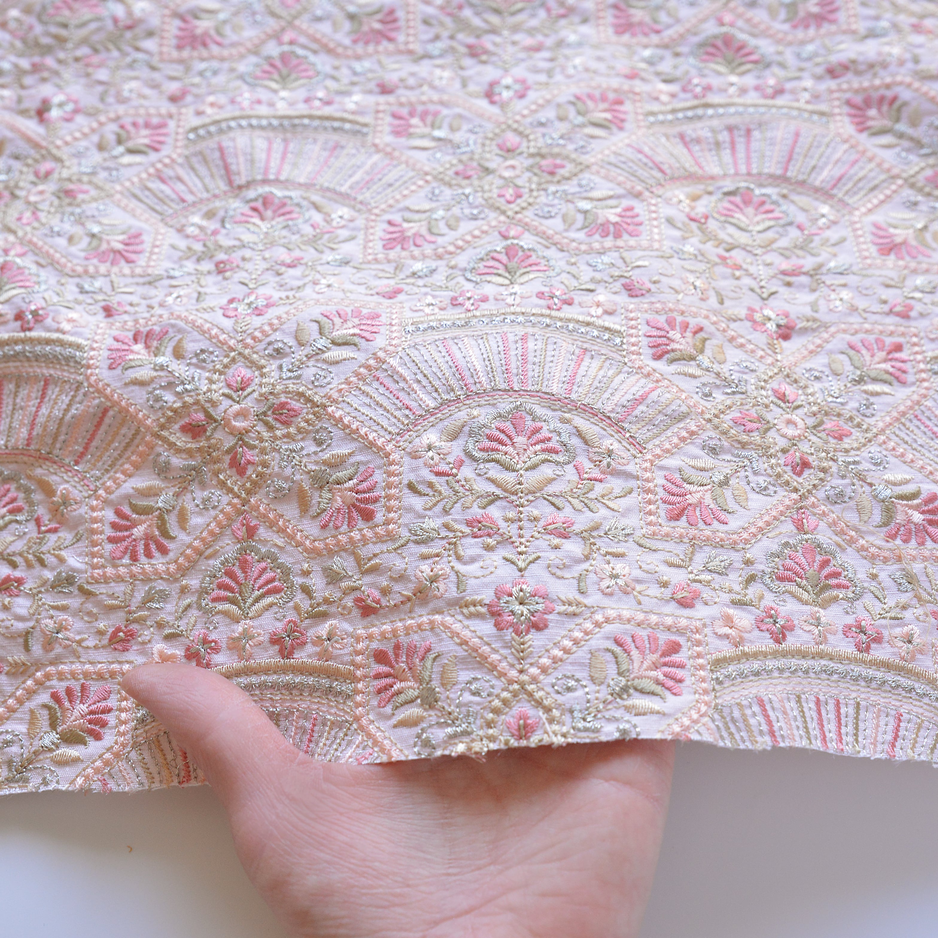 【再販】インド刺繍生地 オリエンタル ピンク 高級生地 23K37