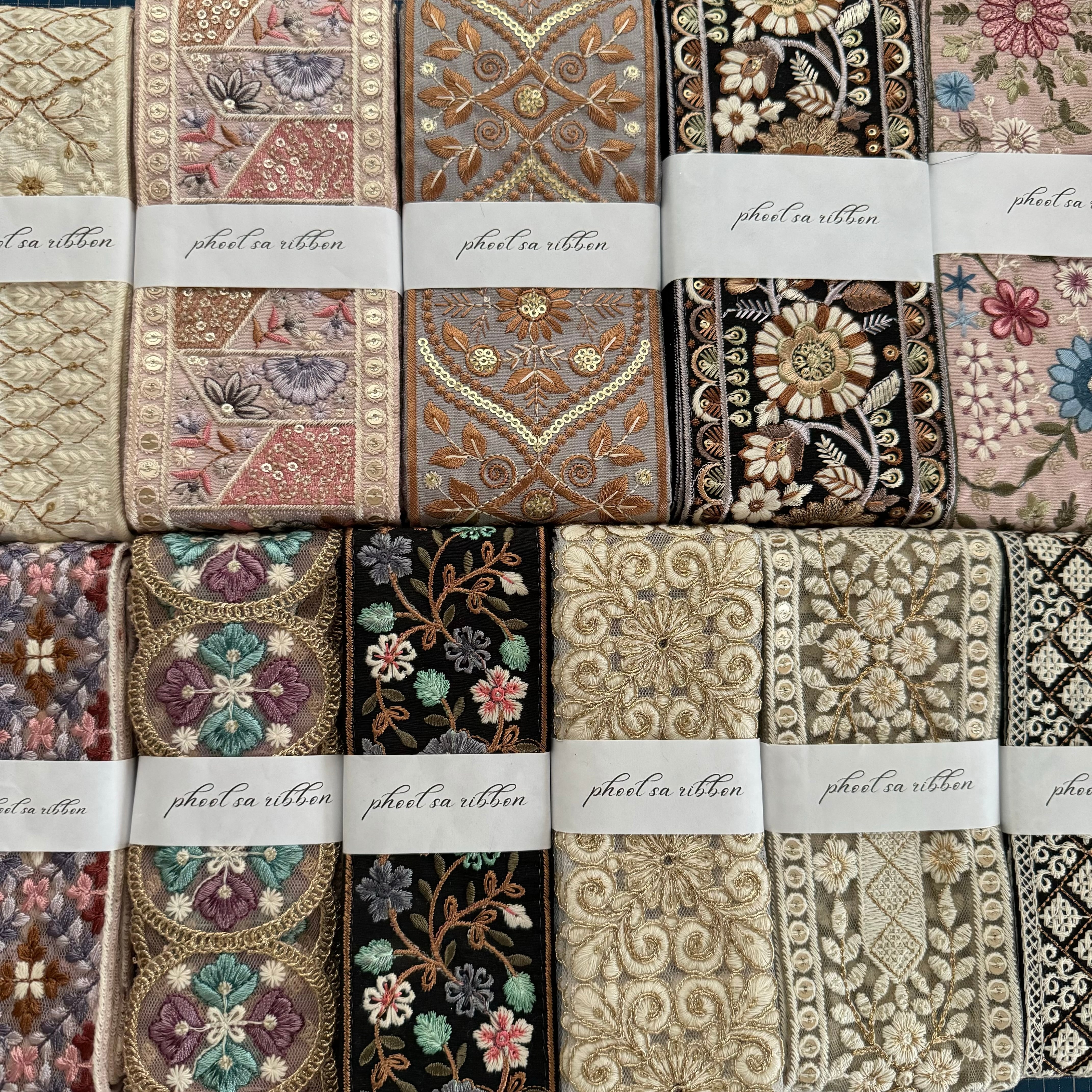 ※こちらの商品は検品が甘めとなっておりますため、インド刺繍リボン特有の横幅の歪みや不良個所が多少含まれる場合がございます