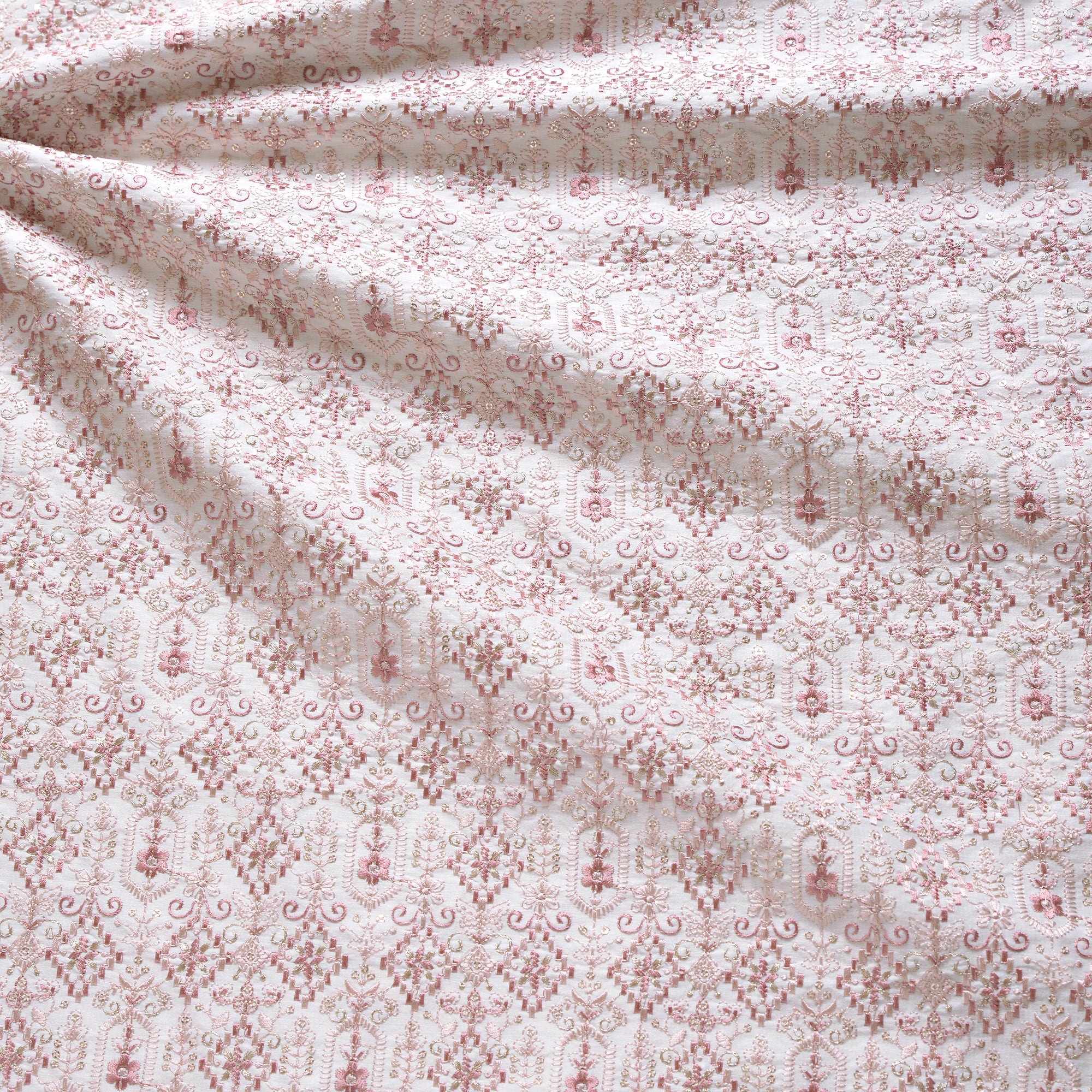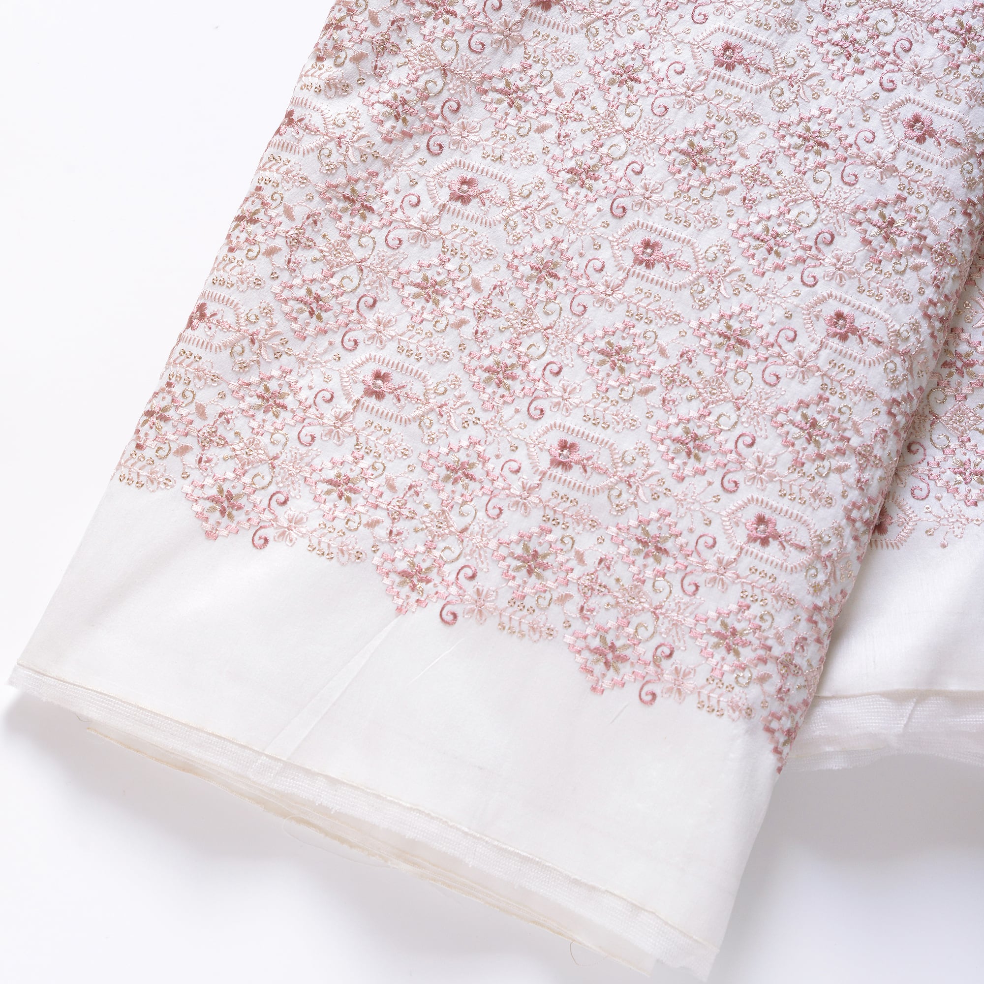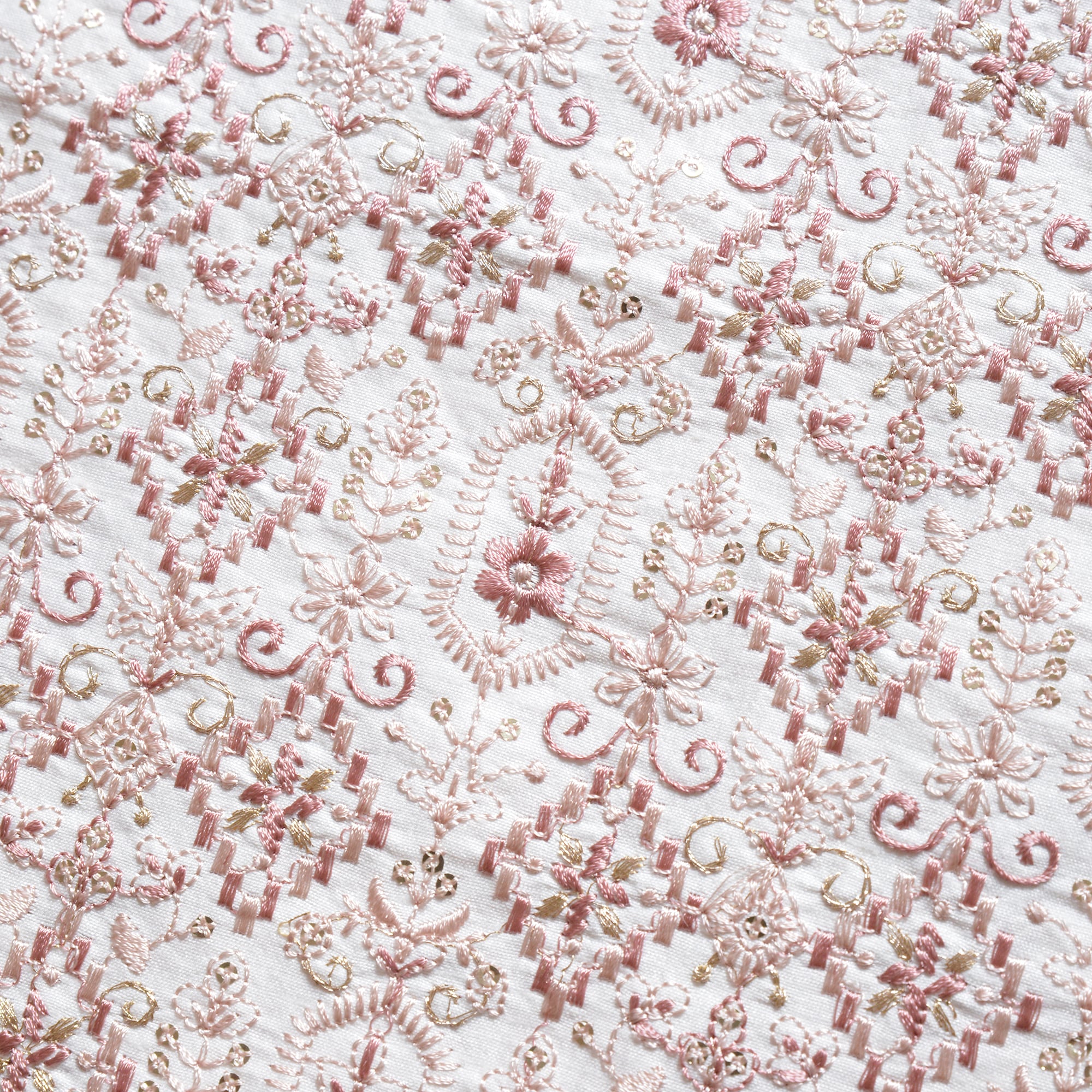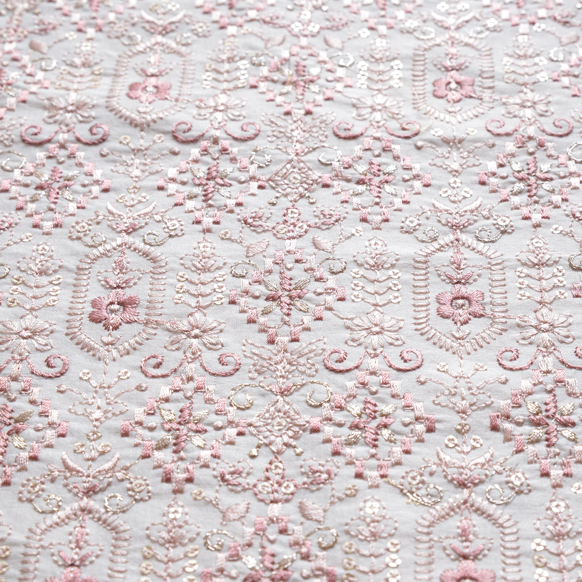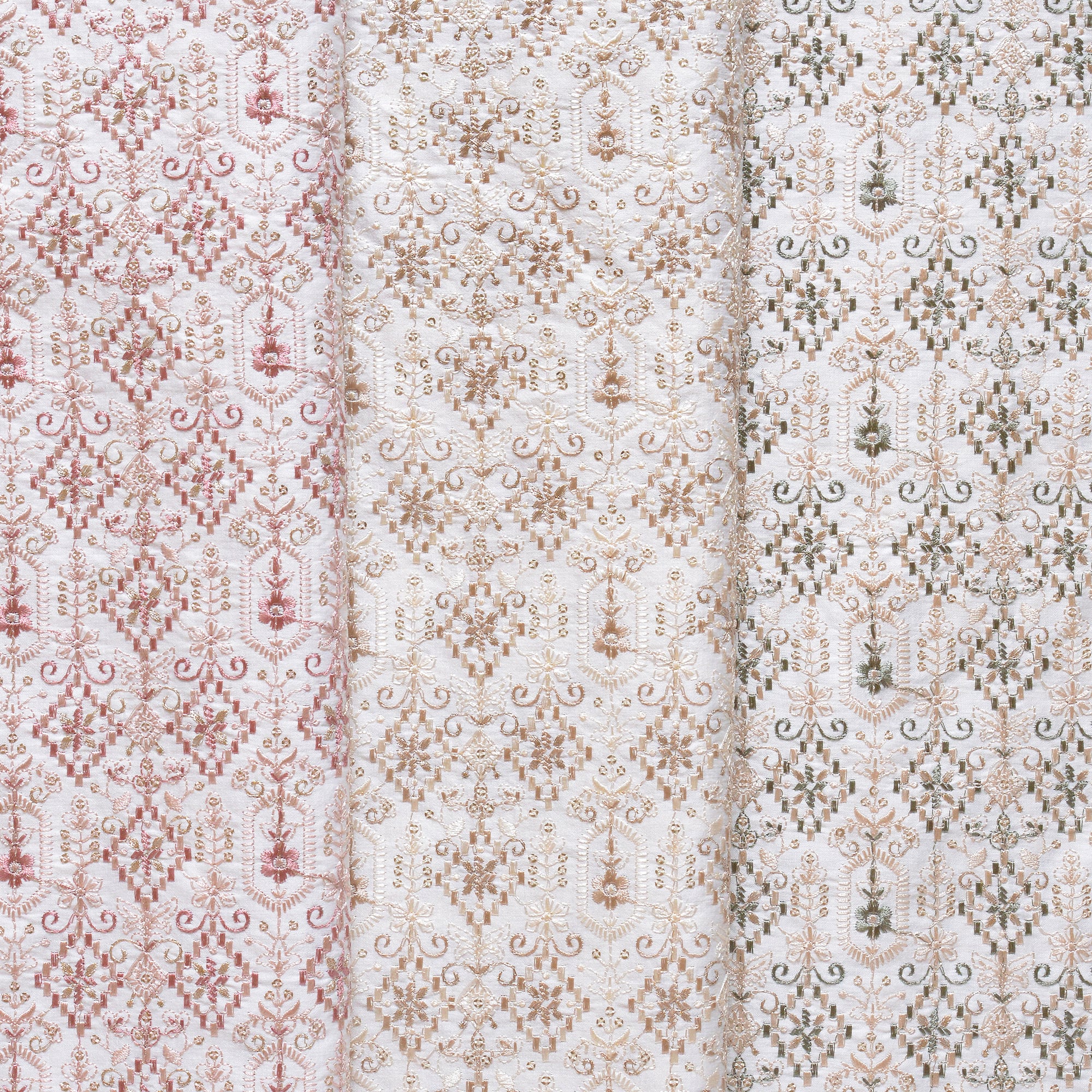 光沢感のある淡いカラーの刺繍が上品なインド刺繍生地です